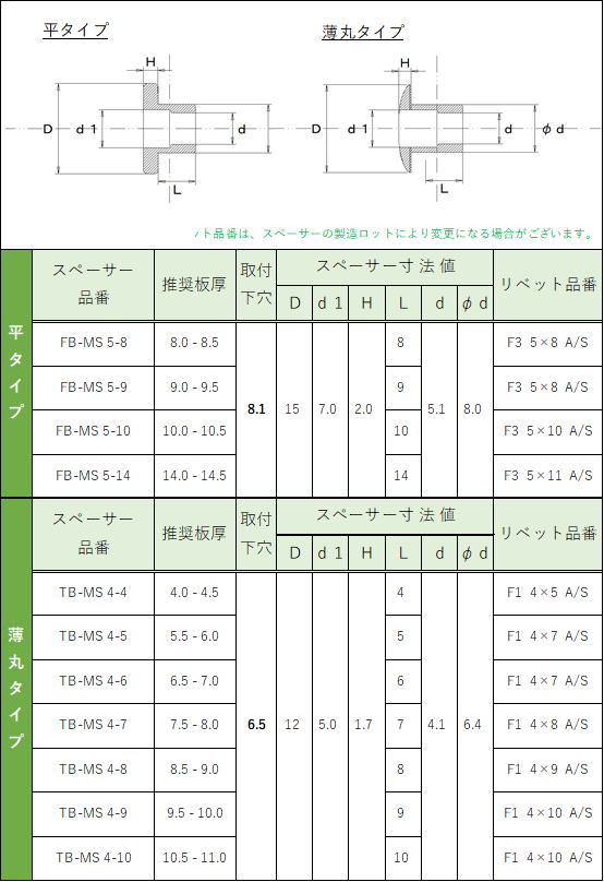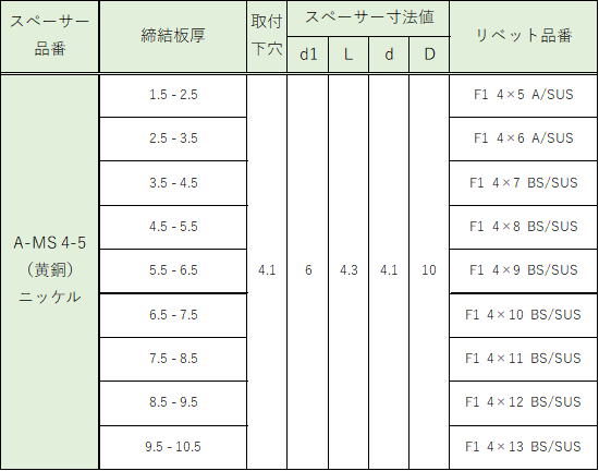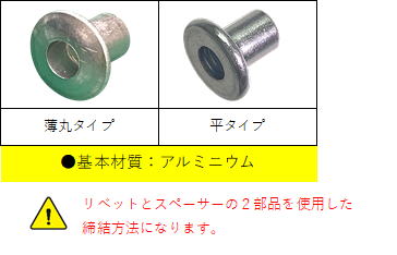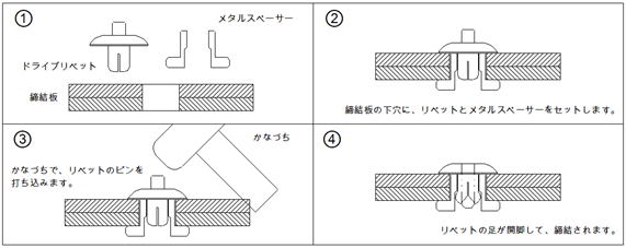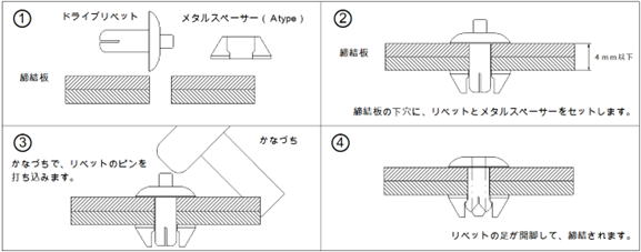 注)取り外したリベットは再使用出来ません。スペーサーは再使用可。 |