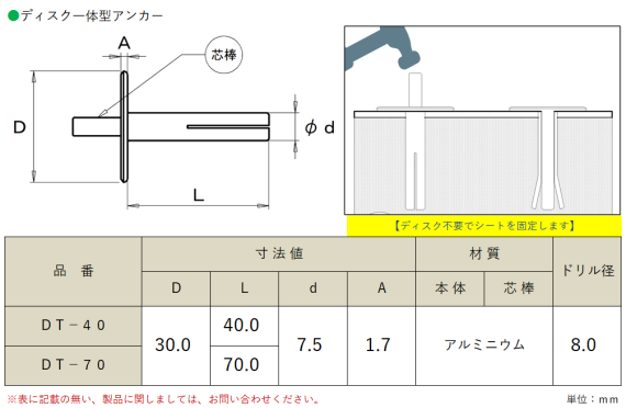 ディスク一体型のアンカー