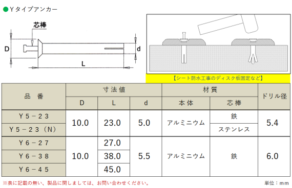 ○アルミアンカー(Yタイプアンカー)